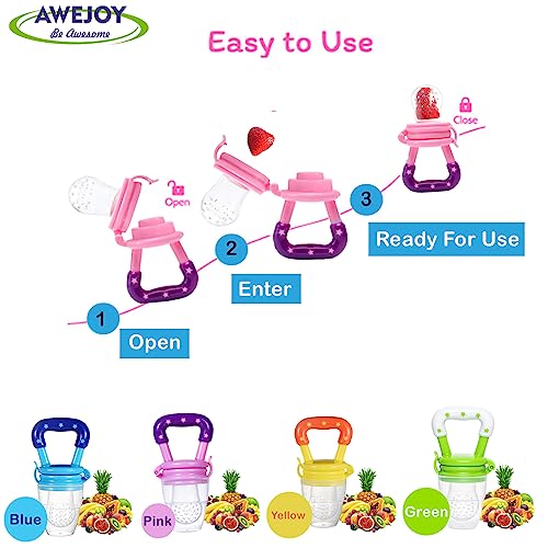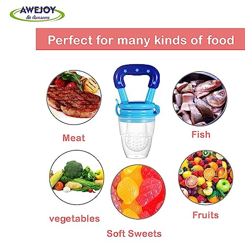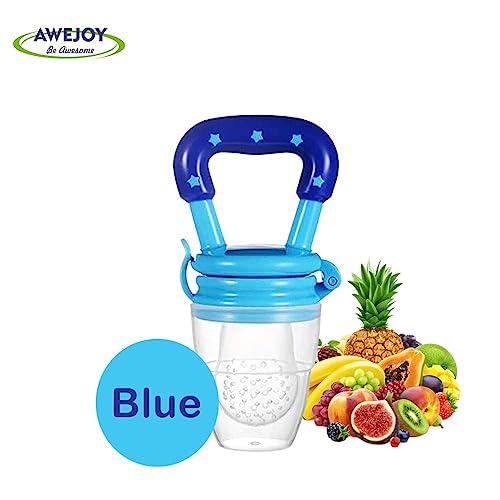 Awejoy Silicone Fruit & Food Feeder Pacifier for Babies | BPA-Free Blue Teether Nibbler with Safety Lock & Handle | Fresh Food Feeder for Self-Feeding (Blue,Pack of 1)