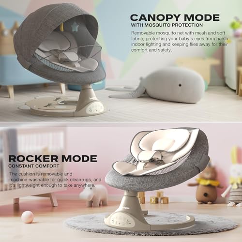 Durable & Safe Material: This Electric swing cradle is made up of safe environment-friendly and durable material, The Fabric is intertwined which can quickly dissipate heat and absorb sweat more quickly. washable and breathable fabric.