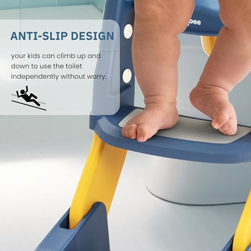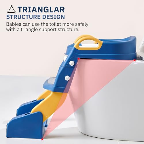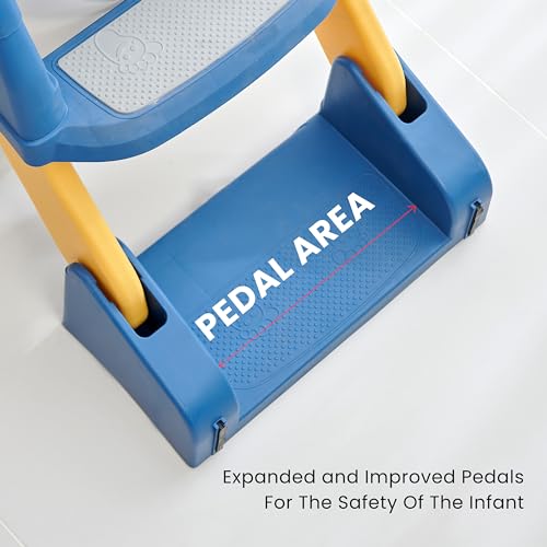 【Safe and Durable】: This Potty seat is made up of safe and durable material. the potty seat with ladder for toddlers is safe to use with the Upgraded Anti-slip design for the footpads and ladder. That will prevent the toilet seat from shifting, which means your kids can climb up and down to use the toilet independently without worry.