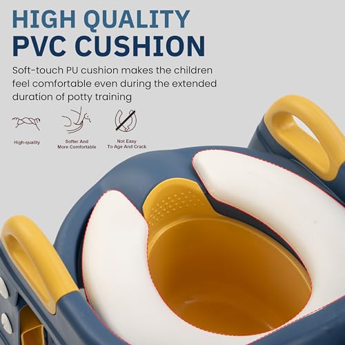 【Comfortable Seat & Handle】: The toilet training seat is equipped with smooth and large armrests that fit the curvature of the baby’s fingers, making it more comfortable and secure to hold. Soft removable cushion seat, to provide comfort to the baby.