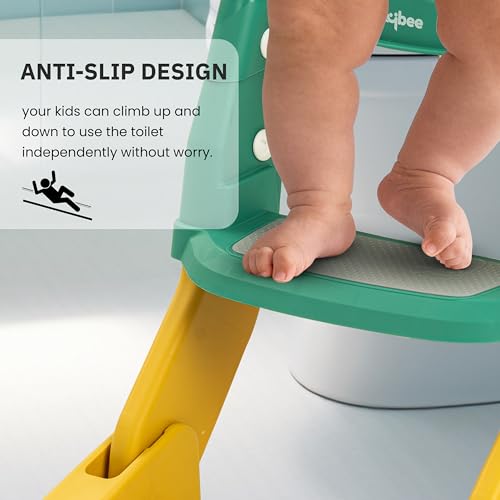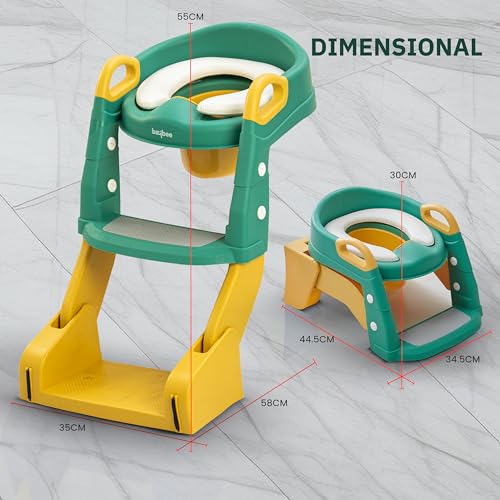 【Safe and Durable】: This Potty seat is made up of safe and durable material. the potty seat with ladder for toddlers is safe to use with the Upgraded Anti-slip design for the footpads and ladder. That will prevent the toilet seat from shifting, which means your kids can climb up and down to use the toilet independently without worry.