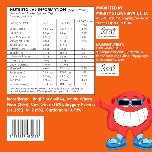 💪 Packed with Superfoods: Ragi and whole wheat are superfoods rich in calcium, iron, and fiber—essential for strong bones, teeth, and overall growth, making these cookies and biscuits a great snack for active kids, especially those around 1 year old.