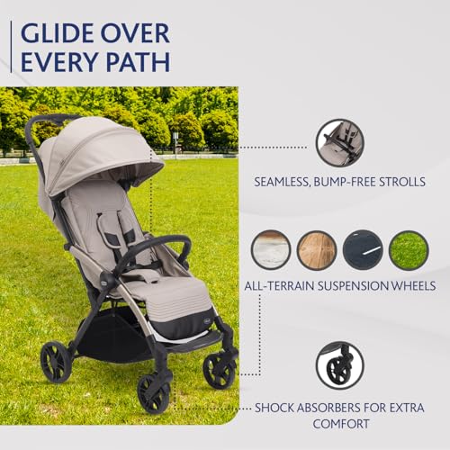 Chicco Goody XPlus stroller combines the OneTouch self-folding technology with elegance and glam, giving parents a stroller made to stand out for both its smartness and style. The stroller is homologated from birth up to 4 years and welcomes the baby with a wide, padded seat with all the desired comforts. The sturdy wheels are able to win every road and give parents a smooth manoeuvrability for the best strolling experience.