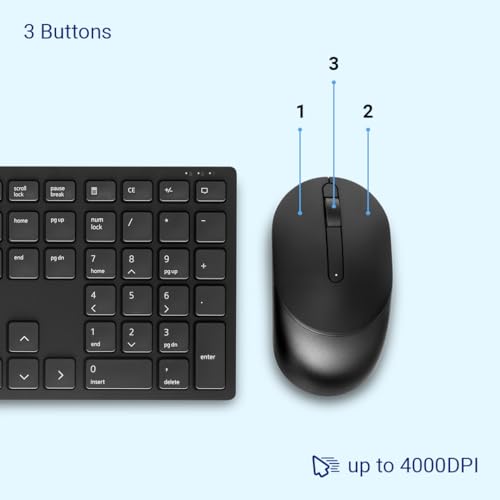 Dell KM5221W Wireless Combo – RF 2.4GHz Wireless Keyboard with 12 Programmable Keys and 3 Button Optical Mouse, Spill-Resistant Keys, up to 36 Month Battery Life, 3Y Advance Exchange Warranty – Black