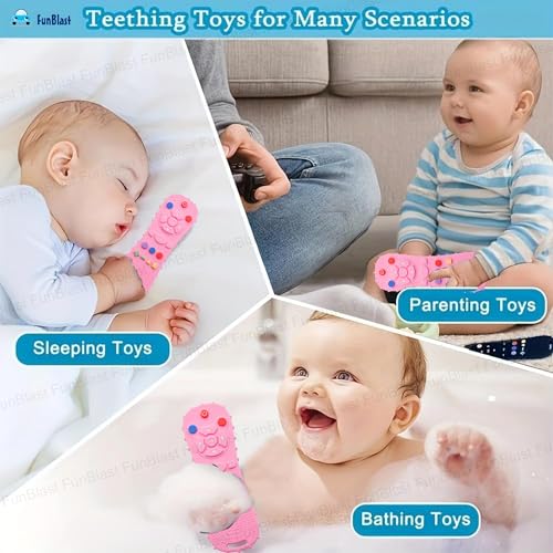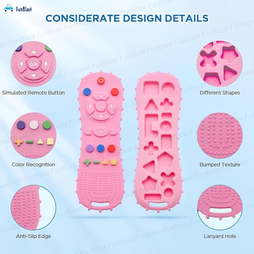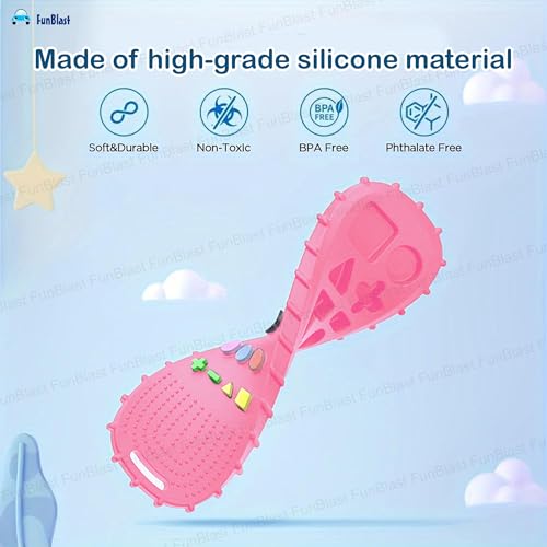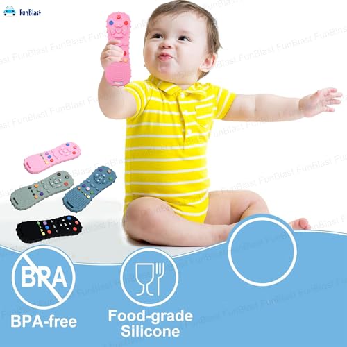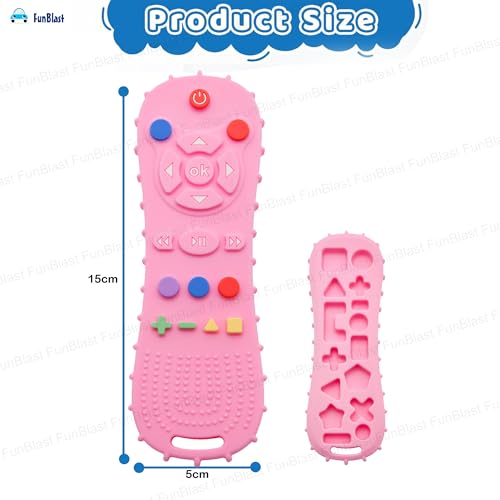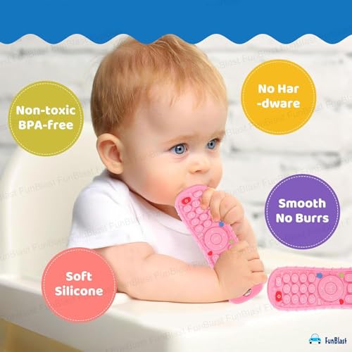 FunBlast Teether for Babies – Silicone Remote Teether for 3+ Month Baby & Toddlers, Teething Toys for Babies and Toddlers, Helps Biting Skills Development, Activity Toys for Babies Remote Teether – FunBlast remote teether toy is made of high-grade silicone material. Non-Toxic and BPA free Soft Teether for 3+ Months Babies – FunBlast remote teether is easy to grasp and hold for little hands, colorful soft and flexible perfect for teething Baby Teether Toy – The bright colour makes this a firm favourite with your baby and it’ll provide much needed relief for sore teeth & gums. You can even pop it in the fridge to give baby a cooler, tough surface for extra soothing and stimulation Soft Edges – The edges of this remote teether are so soft and gentle on your baby’s gums to ensures it soothes them down Best Teethers for Infants – Helps to soothe and massage painful gums as well as keeping baby stimulated with this super soft silicone remote teether. FunBlast Teether for Babies – Silicone Remote Teether for 3+ Month Baby & Toddlers, Teething Toys for Babies and Toddlers, Helps Biting Skills Development, Activity Toys for Babies