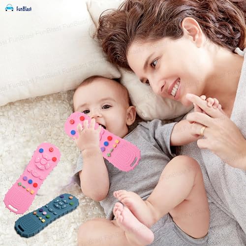 Soft Teether for 3+ Months Babies – FunBlast remote teether is easy to grasp and hold for little hands, colorful soft and flexible perfect for teething