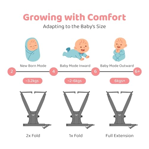Featuring wide, padded shoulder straps, a chest strap, and a supportive waist belt, this carrier offers a customized fit for all parents. The lumbar support panel helps reduce strain on your back, shoulders, and neck. Enjoy hands-free convenience with multiple carry positions, including front-facing in, front-facing out, and newborn inward carry.
