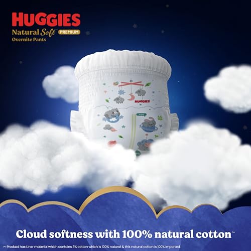 The Ultimate Sleep Solution – New Huggies Natural Soft Premium Overnite diapers – Our most Premium diapers designed for 5x Sleep protection; Diaper M size pants, Pack of 42 diaper pants | Ideal for 7 to 12 kgs