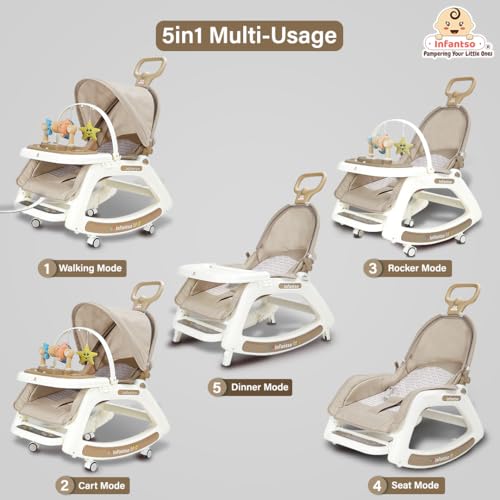 - ๐ด 5-in-1 Versatility: Transforms into Walker, Rocker, Cart, Feeding Chair, and Lounger Seat with a simple setup.