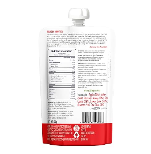 𝐍𝐮𝐭𝐫𝐢𝐞𝐧𝐭-𝐃𝐞𝐧𝐬𝐞: Each pouch has min of 4 g healthy fats & 4 g protein which are needed for baby’s brain development & growth.