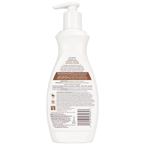 Hydrate and replenish skin with Palmer’s Coconut Oil Formula daily body lotion, crafted with antioxidant-rich Coconut Oil and Green Coffee Extract for radiant, healthy-looking skin. Curious about the effects of green coffee extract on skin? Dermatologists and experts have been privy to the power of green coffee extract skin care for years, and now it’s your turn. This moisturizing body lotion for dry skin delivers luxurious long lasting moisture for decadently pampered skin all day long. Proudly made in U.S.A., Palmer’s has been a trusted brand for over 180 years, providing high-quality natural products that are passed down from generation to generation. America’s #1 Coconut Oil Skin Care brand Palmer’s Coconut Oil Formula uses the highest quality natural ingredients for superior moisturization head-to-toe.