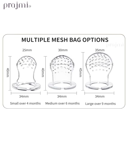 EASY TO HOLD: The prajmi baby Fruit Feeder is designed with a big circular handle which allows for an easy grip for little hands encouraging babies to self-feed, building independence and improving hand-eye coordination.