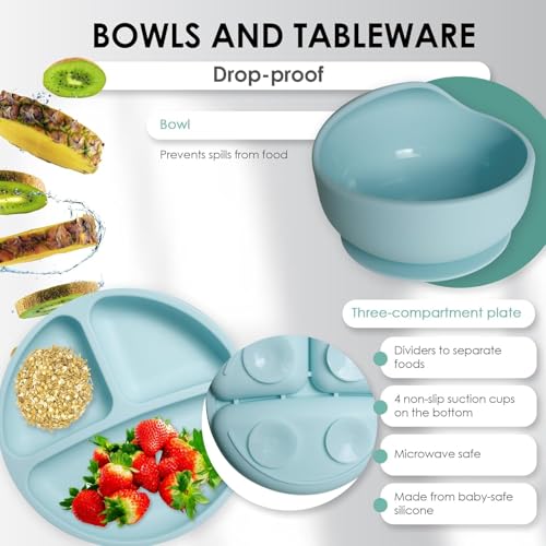 Smart Design for Easy Mealtime: Mealtime becomes a joyous and mess-free experience with our smartly designed feeding set. The plate’s clever compartments cater to various food types, ensuring a well-organized serving. The strong suction in both the plate and bowl prevents spills and mess, making it a challenge for little ones to pull or tip over.