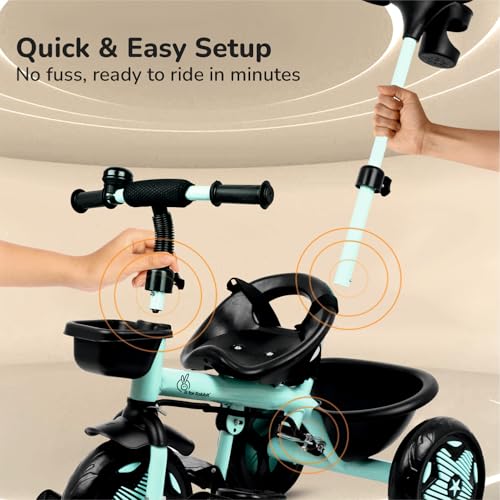 Kids love to enjoy the evening play time; you can double the fun for your child. Did you know how? R for Rabbit brings to you Tiny Toes R20 Ace Smart Plug & Play Baby Tricycle. Tiny Toes R20 Ace is a classy looking tricycle for kids with all the safety features loaded and blended with cute features. Absolutely comfortable for the little one, this Tricycle has smart parental control to never let your child go off the track. Top quality EVA wheels to let your child enjoy the ride. Tiny Toes R20 Ace tricycle for baby is the perfect tricycle to be.