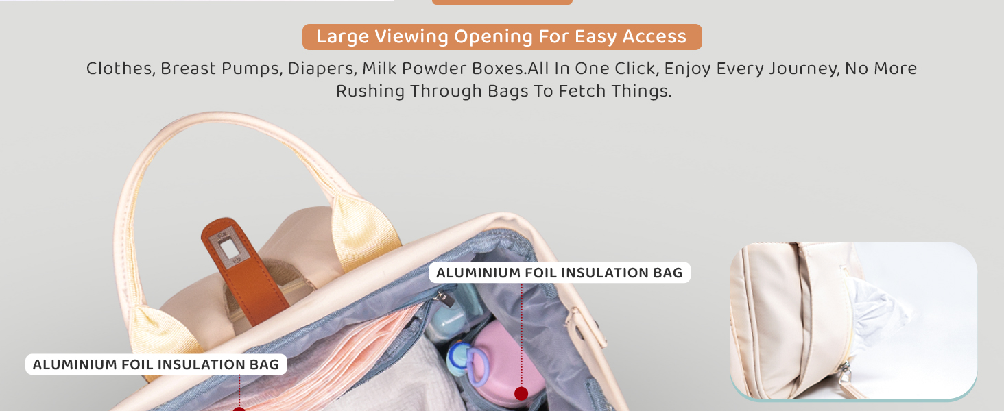 Carrying Options: Comfort is a priority, and the ergonomic straps of this baby bag offer convenient carrying With sturdy handles and adjustable straps, you can switch between different carrying style.
