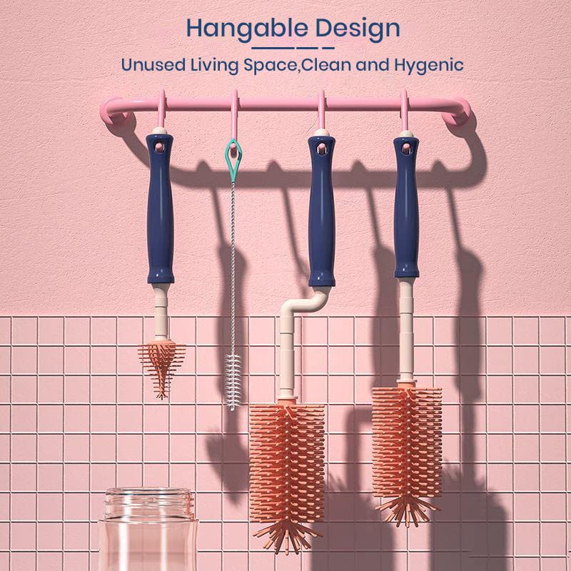 Silicone Bottle Brush Set for Baby Feeding Bottle and Nipple, Long Handle Water, Sports Bottle, Vase, Glassware, and Smaller Diameter Bottle Openings