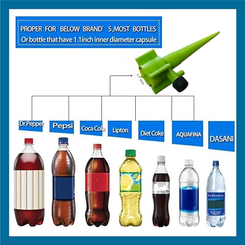 Suitable for 1.1 inches bottles- Note:The plant automatic drip irrigation kit caliber only fits 1.1 inch bottles Suitable for most international standards Cold Drinks bottles,