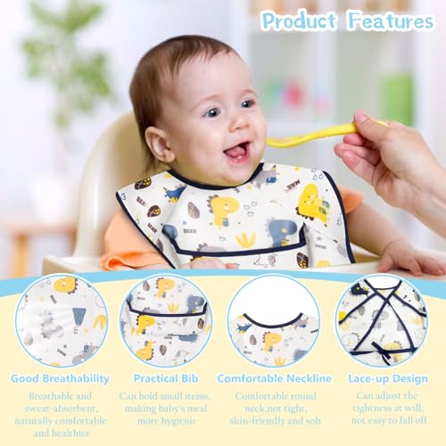 Cute Cartoon Dinosaur Design: Featuring a playful dinosaur-themed design with vibrant colors, these bibs add a fun, imaginative touch to your baby’s wardrobe, making mealtime more enjoyable.