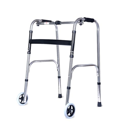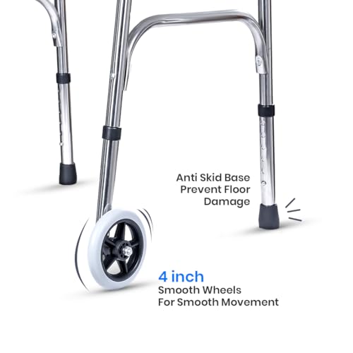 TryFit Zigzag Walker with Wheels (S.S) – Lightweight, Foldable, Adjustable Height, Stainless Steel Frame, Anti-Skid Support
