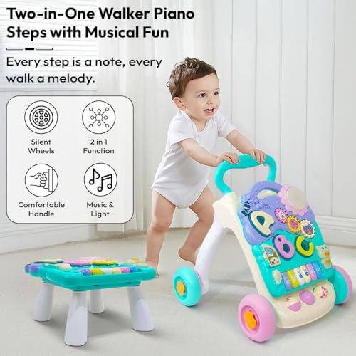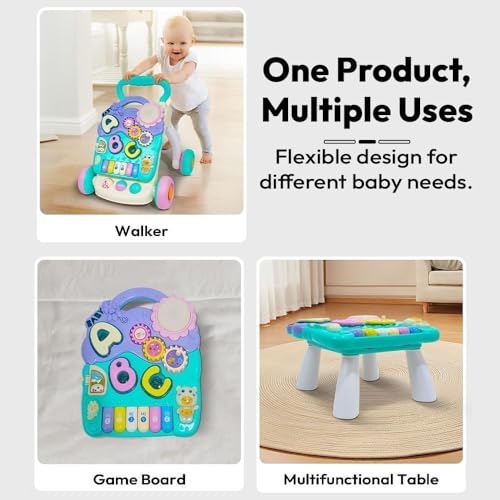 👶3-in-1 Design – Functions as a push walker, an activity tray and table, adapting to different stages of a child’s development.