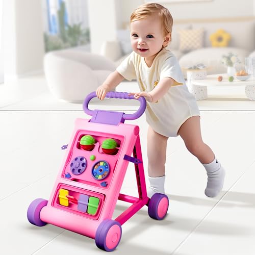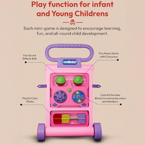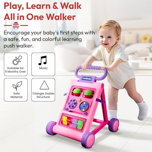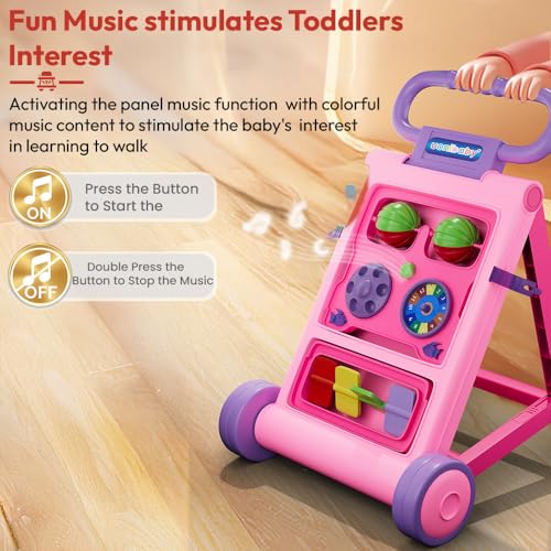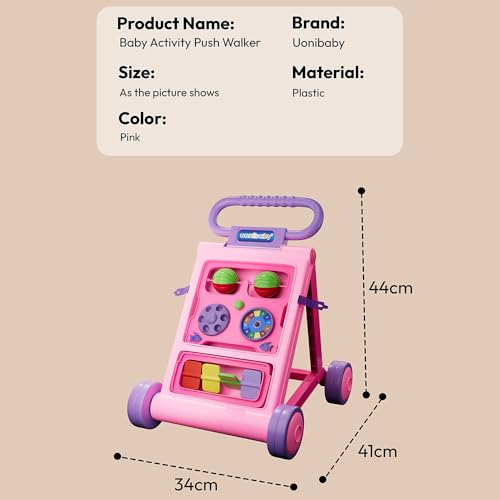 Uonibaby by StarAndDaisy Baby Walkers for 6-18 Month Baby Boy & Girl/Baby Activity Walker Learning Push Walker with Foldable Music and Toy Bar/Walker for Kids – Pink