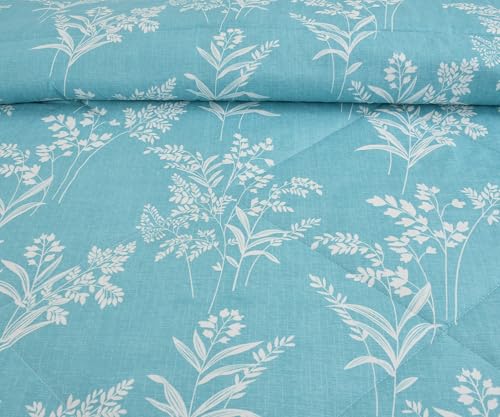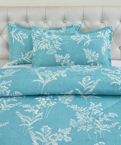 VOMZER Super Soft Microfiber All-Season King Size AC Comforter (90×95 Inches) | Duvet for Double Bed with 1 Elastic Fitted Bedsheet (72×78 Inches) 2 Pillow Covers | 4 Piece Comforter Set Aqua Lily